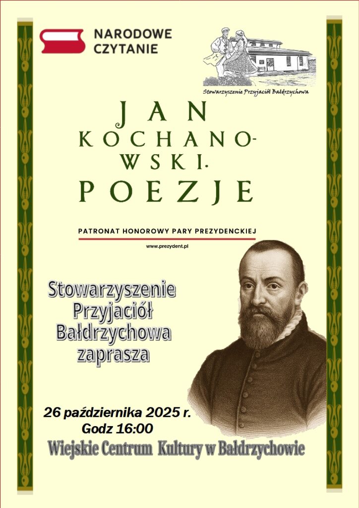 Zapraszamy i zapewniamy że nie będzie nudno. Wydarzenie wzbogaci oprawa muzyczna i choreograficzna. Czytać będą członkowie Stowarzyszenia Przyjaciół Bałdrzychowa, uczniowie LO w Poddębicach i zaproszeni goście